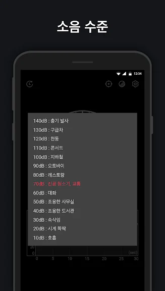 소음측정기 어플에 대한 스크린샷 정보가 필요하시다면 아래 이미지를 참고하시기 바랍니다.